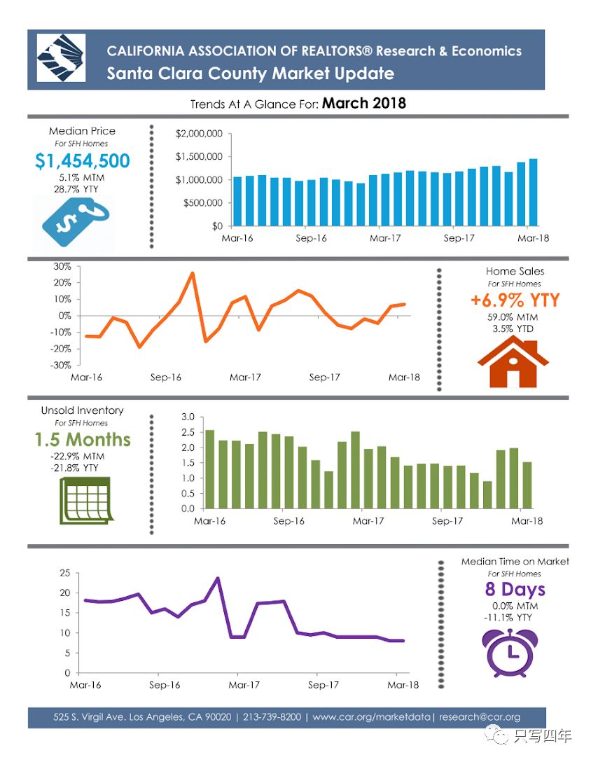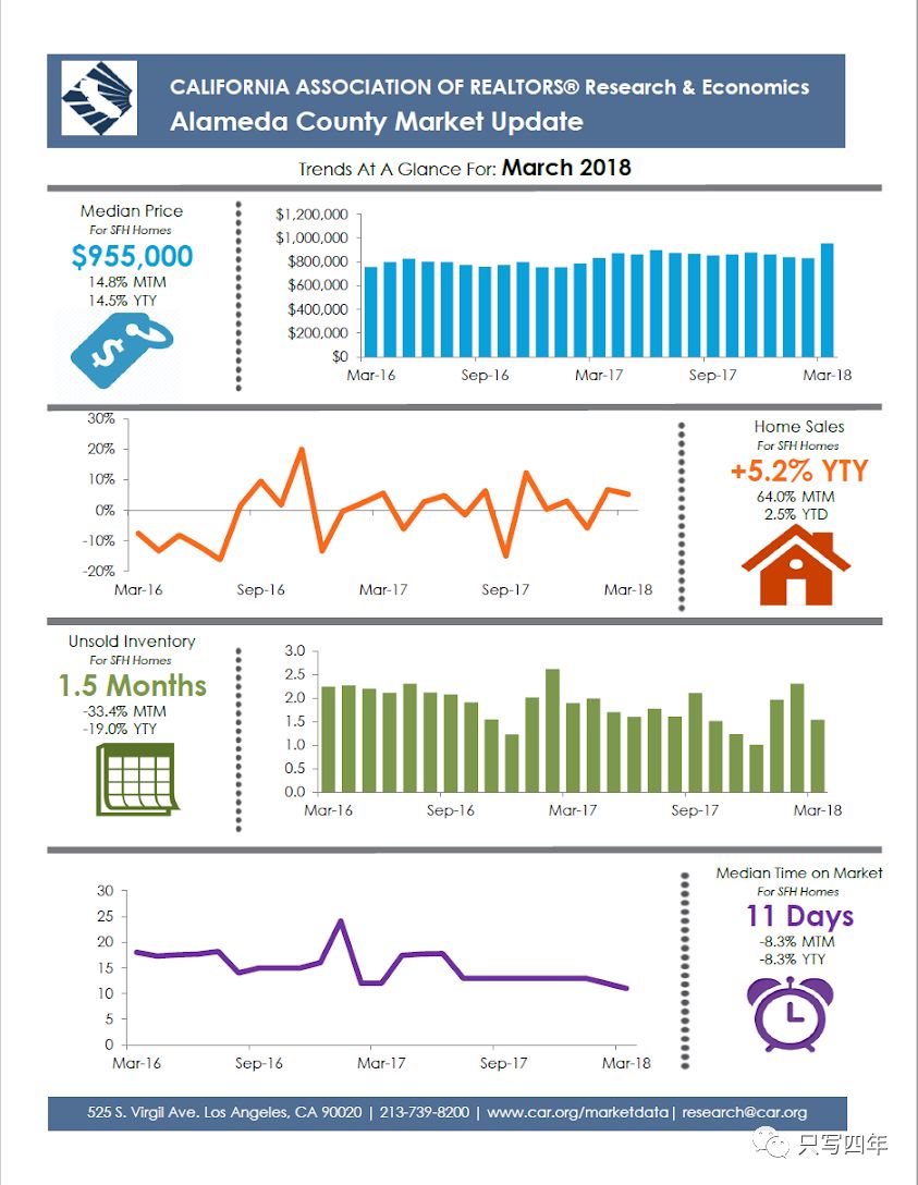 湾区5个热门county在18年3月的同比和环比数据中,成交价格和库存量是什么情况?以下5张图能一目了然。