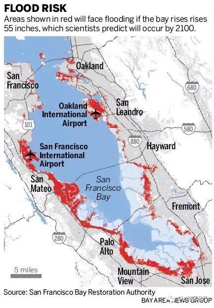 更曾有一份报告:《做足准备:加州如何帮助当地适应海平面上升影响》(Preparing for Rising Seas: How the State Can Help Support Local Coastal Adaptation Efforts),表示到2030年,加州海平面将上升0.5英尺,到2100年,海平面将上升7英尺,湾区部分地区可能会被洪水困扰。