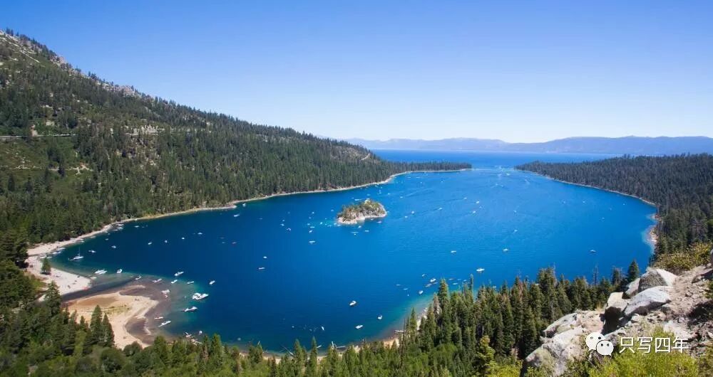 太浩湖(Lake Tahoe),美国第二深湖泊。距离湾区200多英里,交通顺畅的情况下开车需要4小时。她的美是只一眼就难以忘怀的,群山环绕中的湖水真像大自然的蓝宝石之眼。