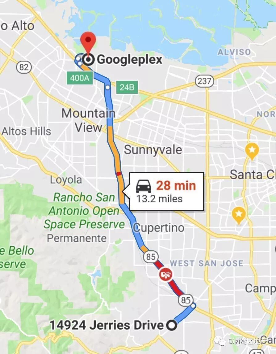 学区房、早高峰、开到Google总部,路上时间有多长?