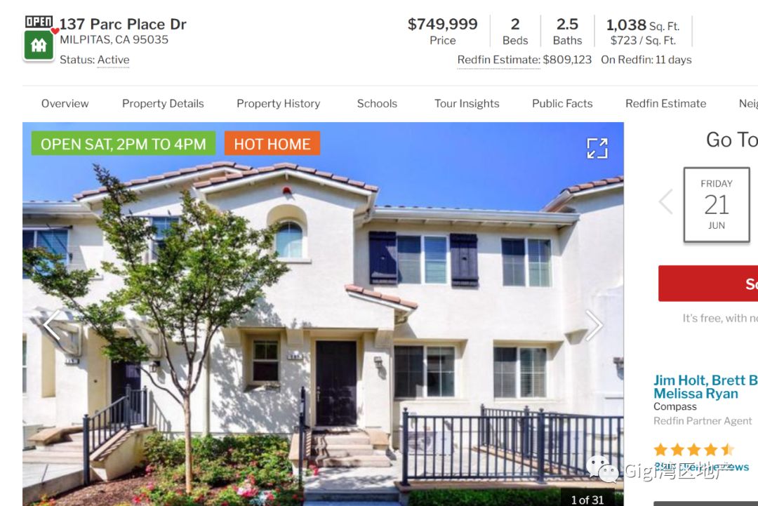 - Milpitas 联排别墅,2房2卫1038尺。HOA仅$318. 上市5天即成为Hot Home。